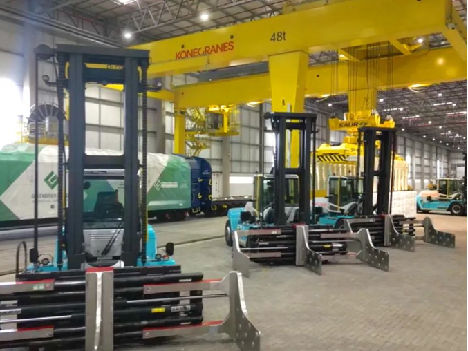 七臺(tái)科尼SMV 16-1200 C 16噸叉車全部配備了特殊夾具,用于在沒有托盤的情況下提升紙漿包,并添加了減震器、安全燈和攝像頭等多種安全增強(qiáng)功能,此外,的傳感器還可優(yōu)化機(jī)油使用并減少浪費(fèi)。